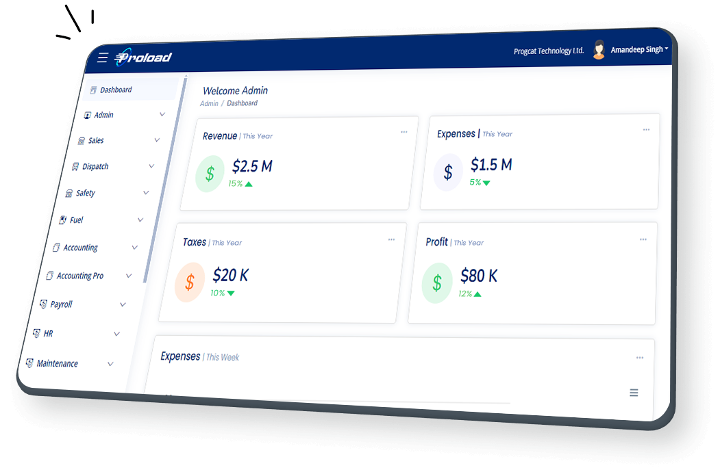 Proload is designed to make managing your fleet easier and more efficient. Our all-in-one solution helps you streamline your operations, improve teamwork, and cut costs.